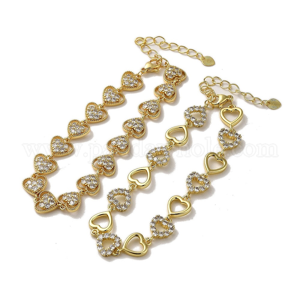 Браслеты из латуни с микропаве и прозрачными звеньями кубического циркония, сердечные браслеты для женщин, без свинца и без кадмия, подарок на День Святого Валентина