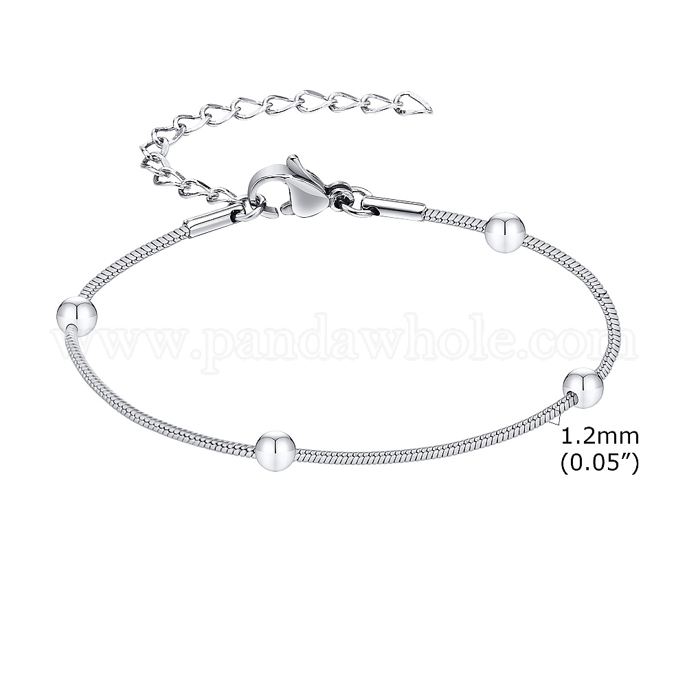 Браслет-цепочка из нержавеющей стали для женщин, с круглых бусин