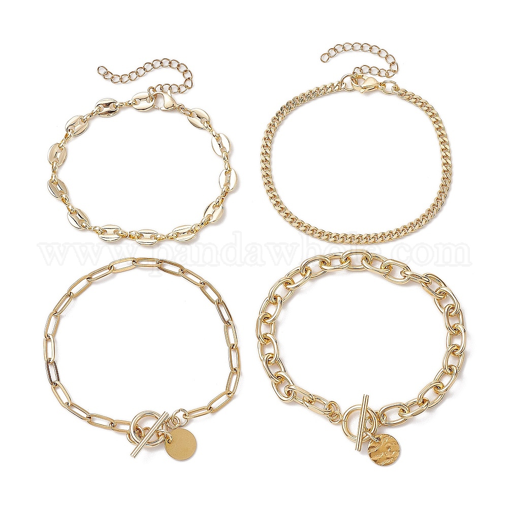 4 шт. 4 стили 304 браслеты-цепочки из нержавеющей стали и латуни (02XF6Q)