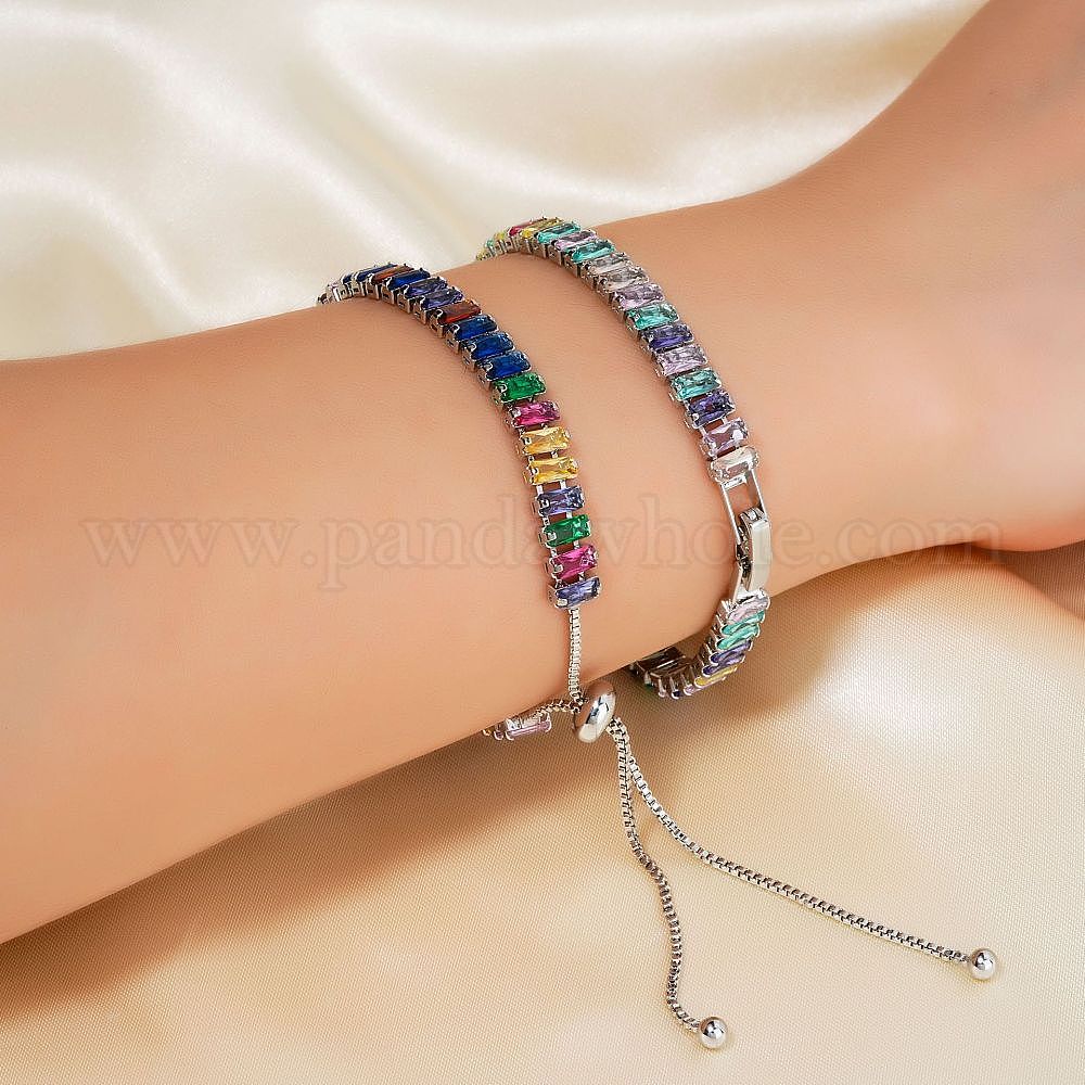 2шт 2 стиль комплект браслетов-цепочек из кубического циркония, регулируемые латунные слайдеры для парных браслетов