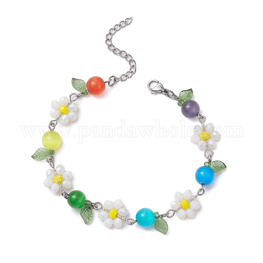 Браслеты-цепочки из цветка и листа кошачий глаз и стекла для женщин