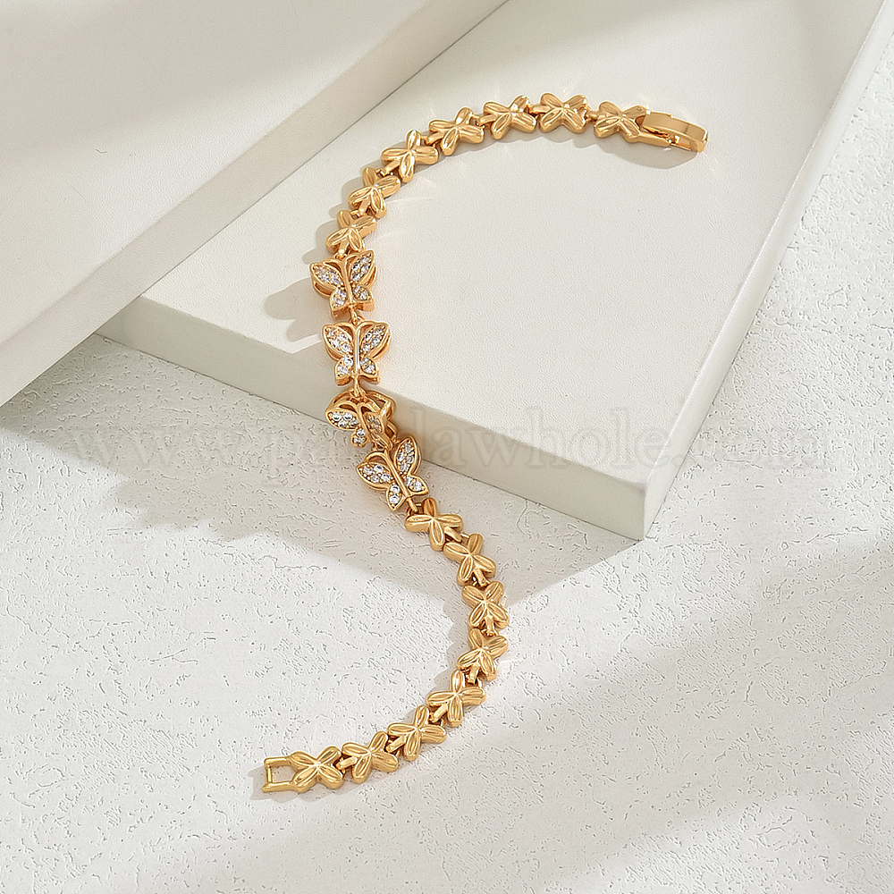 Элегантные латунные браслеты-цепочки в виде бабочек для женщин, с кубического циркония
