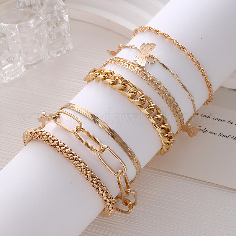 • Золотой 4шт 4 стили сплава цепочка браслет набор для женщин, разноцветные, 9-1/8 дюйм (23 см)