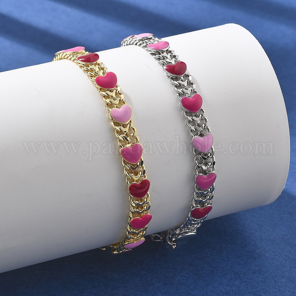 Браслеты-цепочки с сердечками из латуни и эмали для женщин, стойки покрытие, без кадмия и без свинца, долговечный