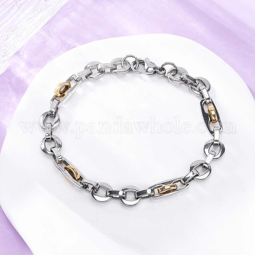 • Золотой & Цвет Нержавеющей Стали 201 браслеты-цепочки с плоскими круглыми звеньями из нержавеющей стали, с 304 нержавеющей стали застежки, ионное покрытие (ip), золотые и нержавеющая сталь цвет, 8-5/8 дюйм (22 см)