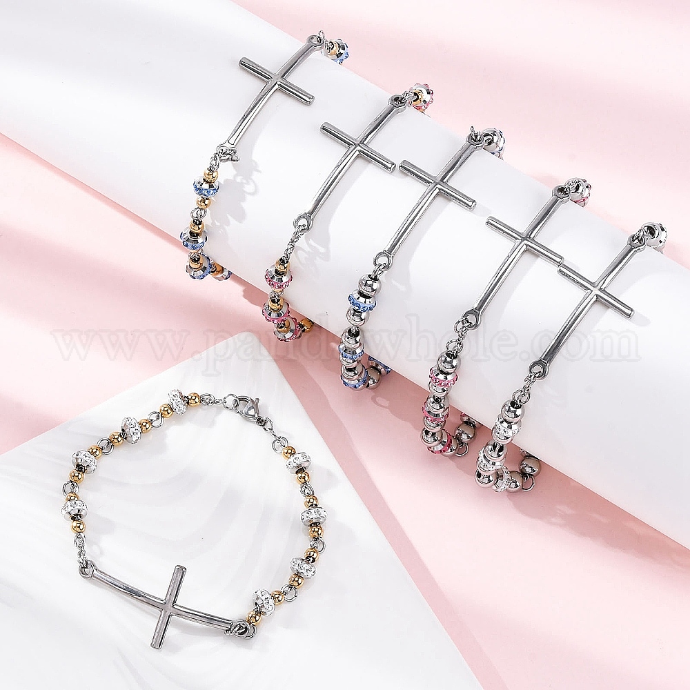 201 из нержавеющей стали ссылку цепи браслеты, с 304 застежками из нержавеющей стали и стразами из полимерной глины для женщин, крестик