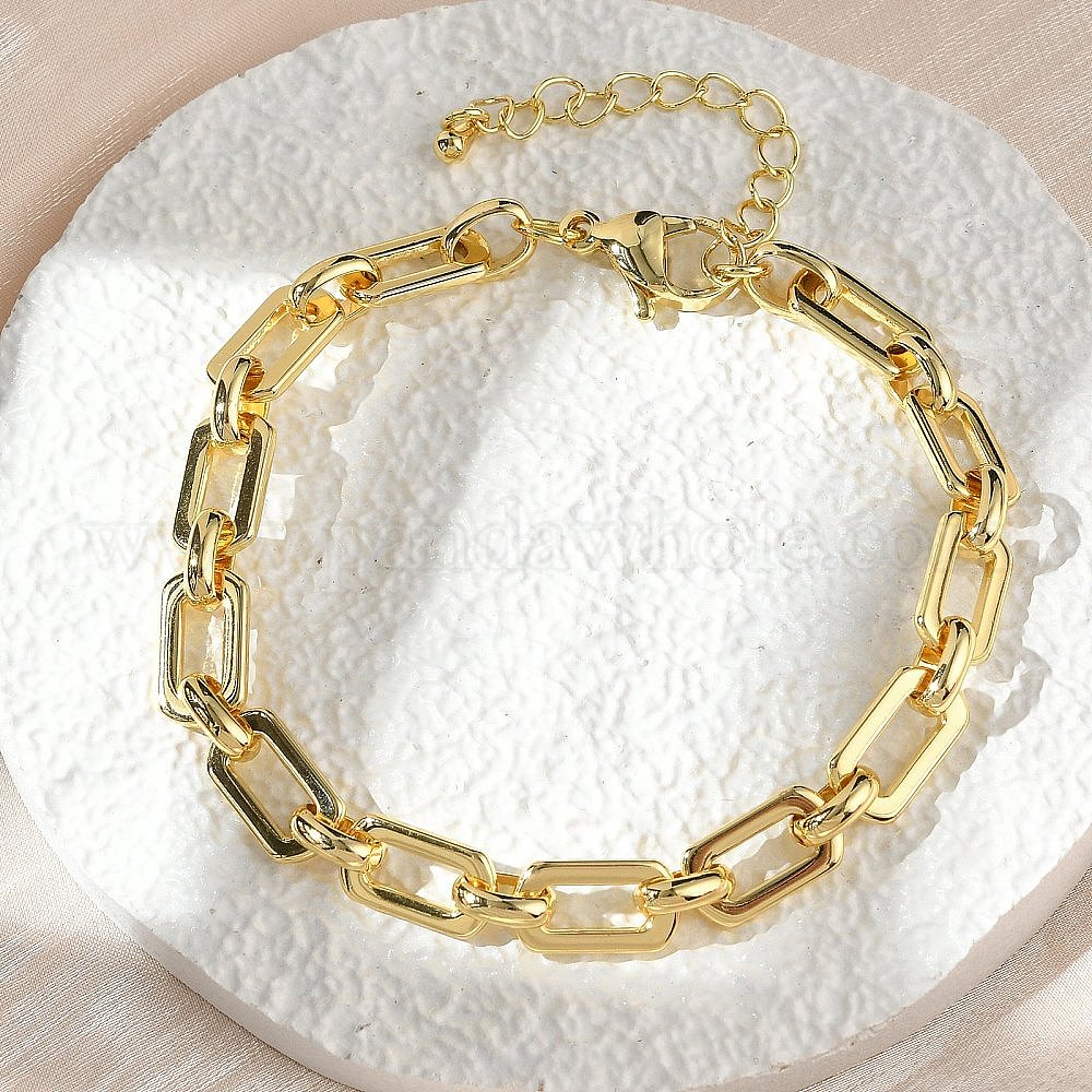 Латунные прямоугольные звенья цепи браслеты для женщин мужчин, долговечный, стойки покрытие, без кадмия и без свинца