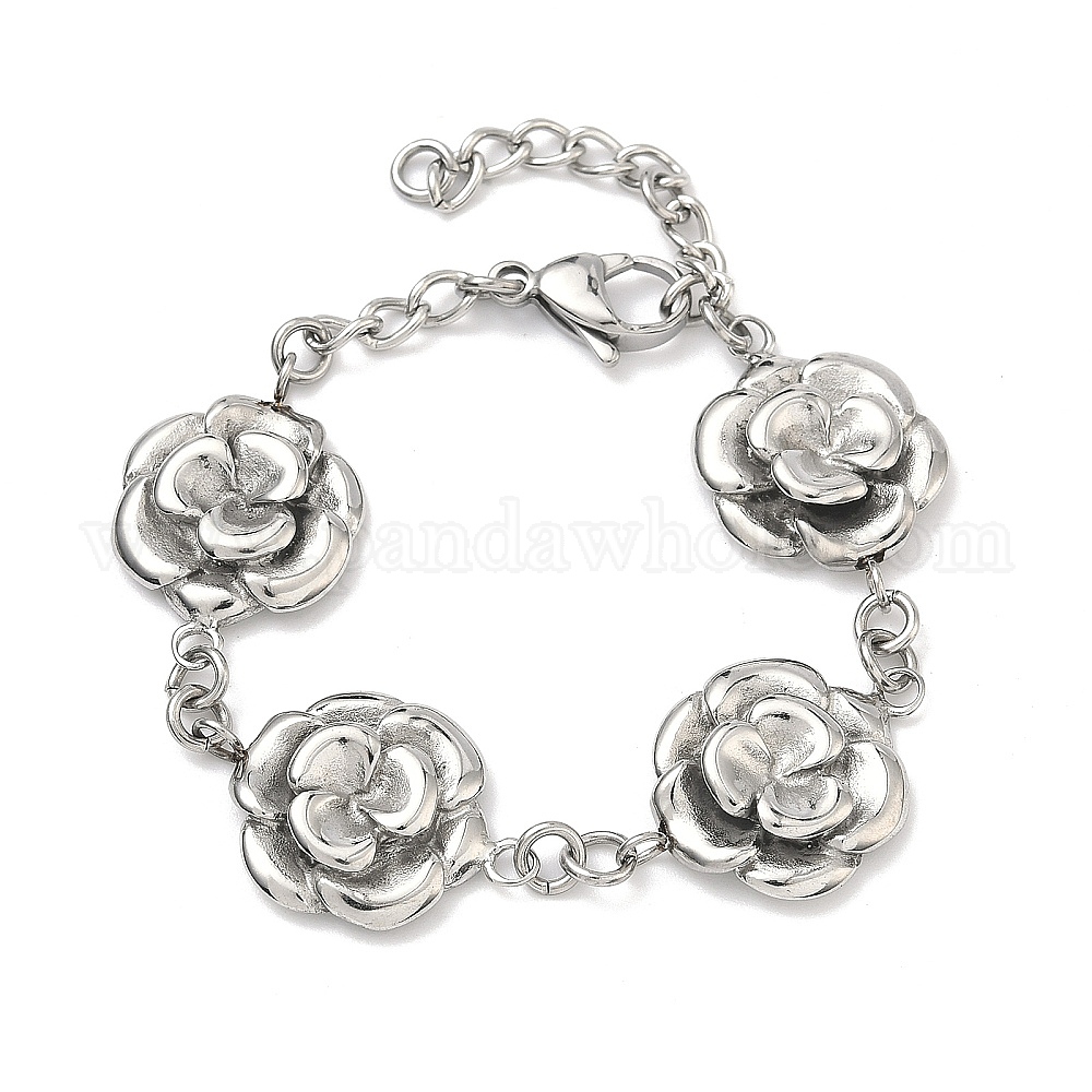 304 женские браслеты-цепочки с цветочными звеньями из нержавеющей стали