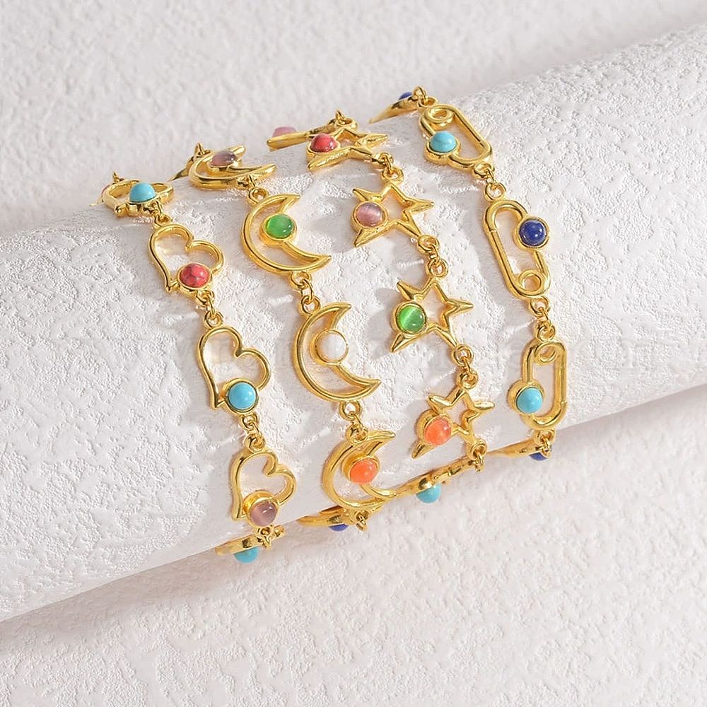 Стиль богема 304 браслеты из нержавеющей стали с цепочкой для женщин, с синтетическими бирюзовый, реальный 18 k позолоченный