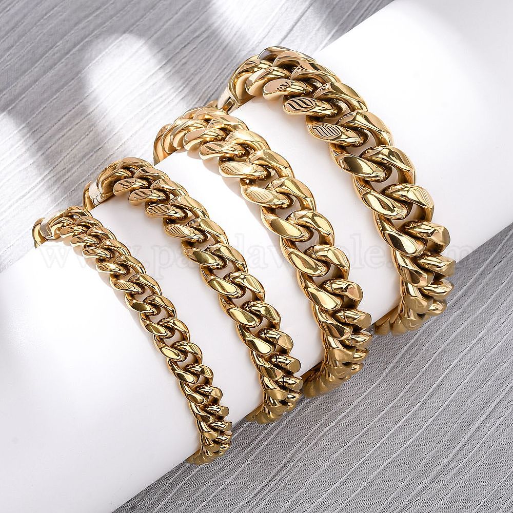 • Настоящее золото 18K 304 браслеты из нержавеющей стали с панцирным плетением для унисекс, ионное покрытие (ip), реальный 18 k позолоченный, 7-5/8 дюйм (19.4 см)