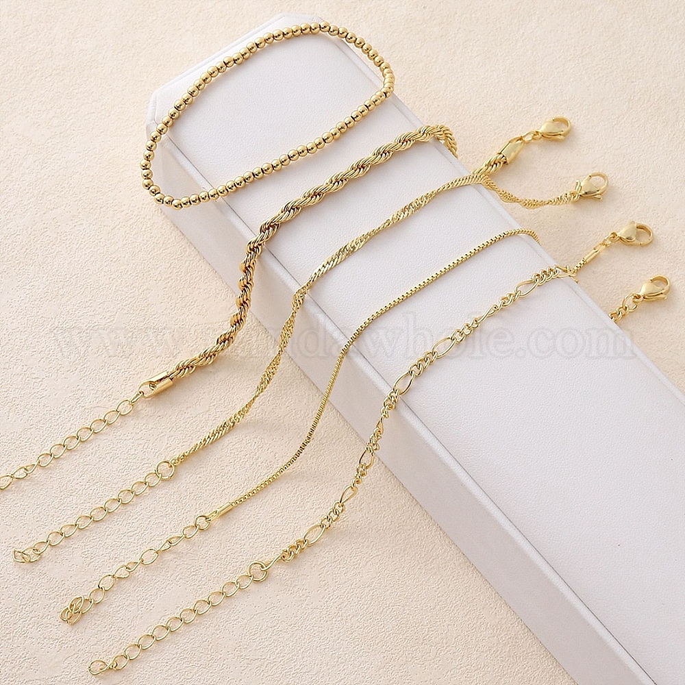 5шт. 5 стили латунные цепочные браслеты и эластичные браслеты набор для женщин