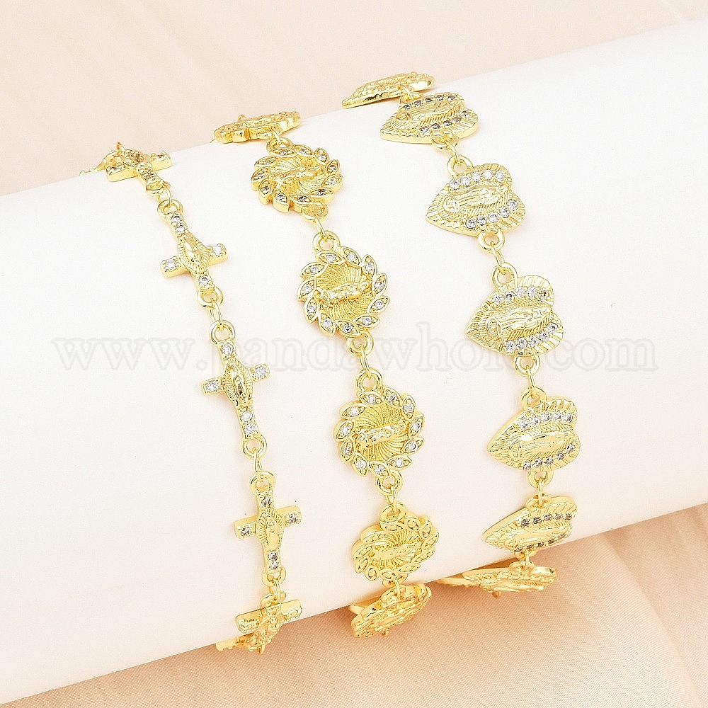 Браслеты-цепочки из латуни с микропаве из прозрачных кубических цирконий на тему Девы Марии для женщин, стойки покрытие, долговечный, без свинца и без кадмия, реальный 18 k позолоченный