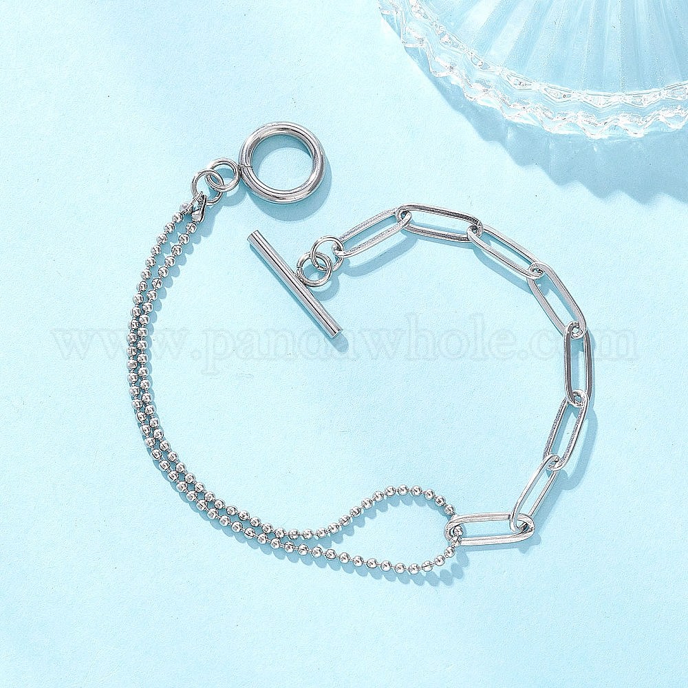 304 Браслеты из цепочек с шариками и скрепками из нержавеющей стали для женщин, с Переключить застежками