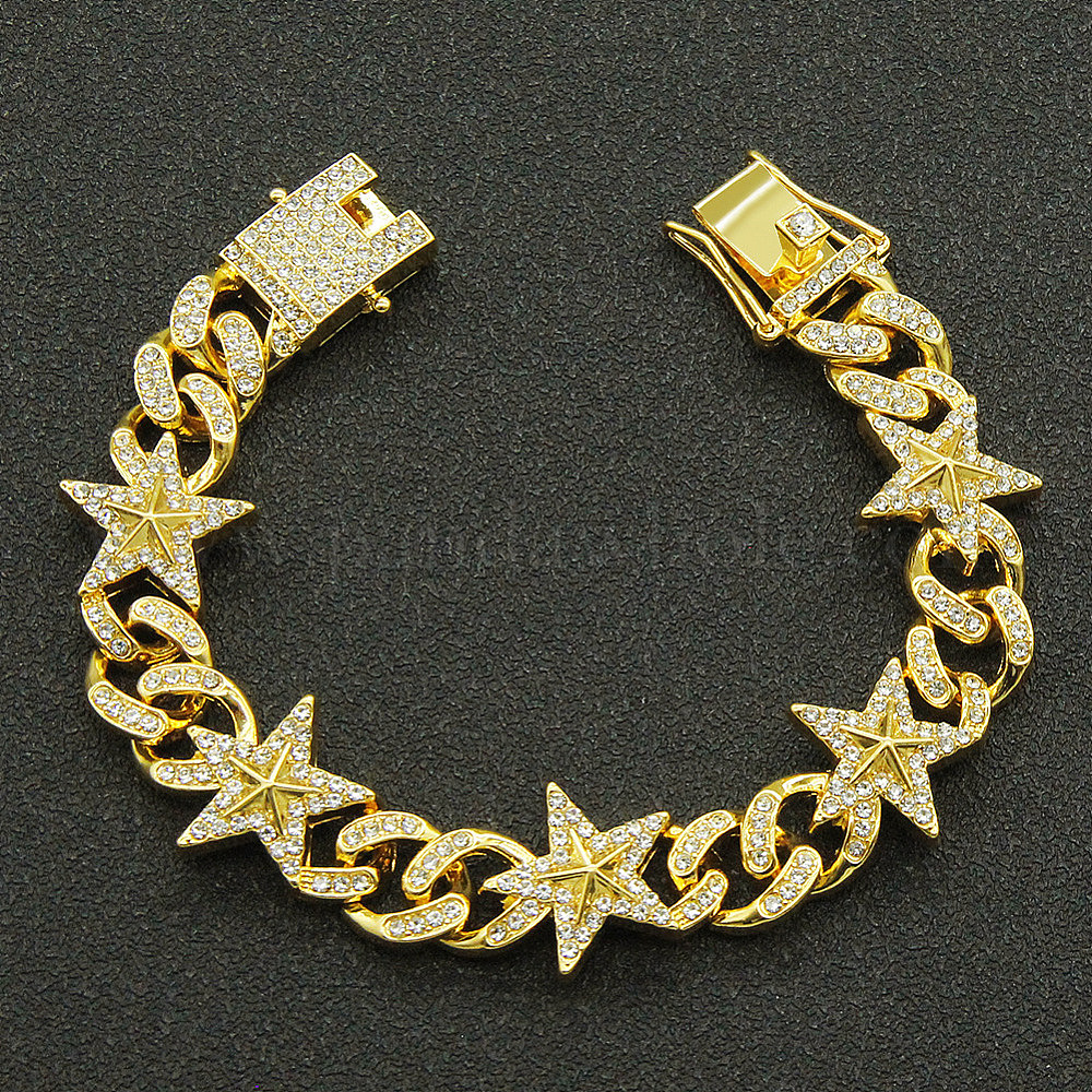 Мужские браслеты-цепочки из кубинского сплава с кристаллами и стразами, звезда