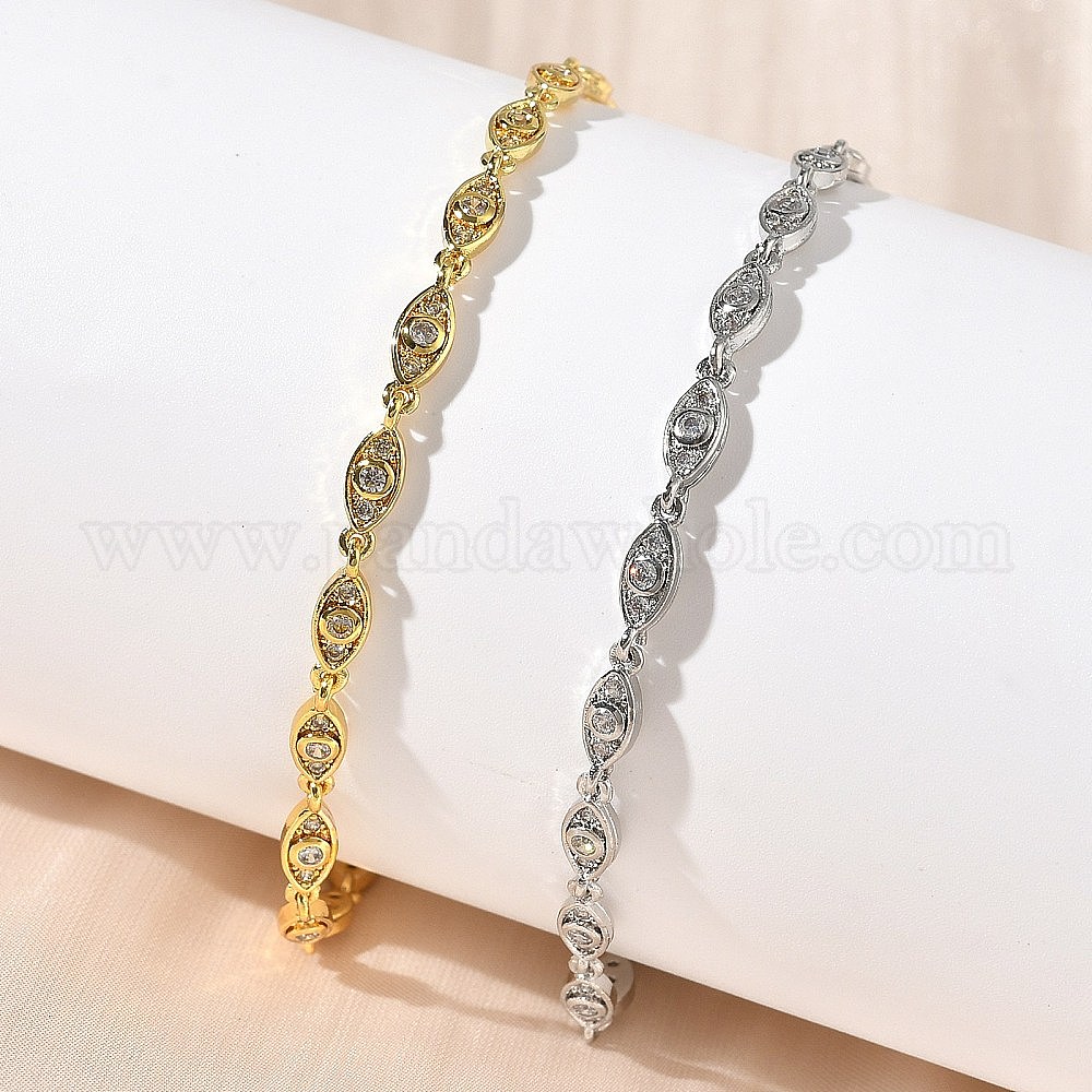 Браслеты-цепочки с микропаве из прозрачных кубических цирконий из латуни для женщин, стойки покрытие, долговечный, без кадмия и без свинца