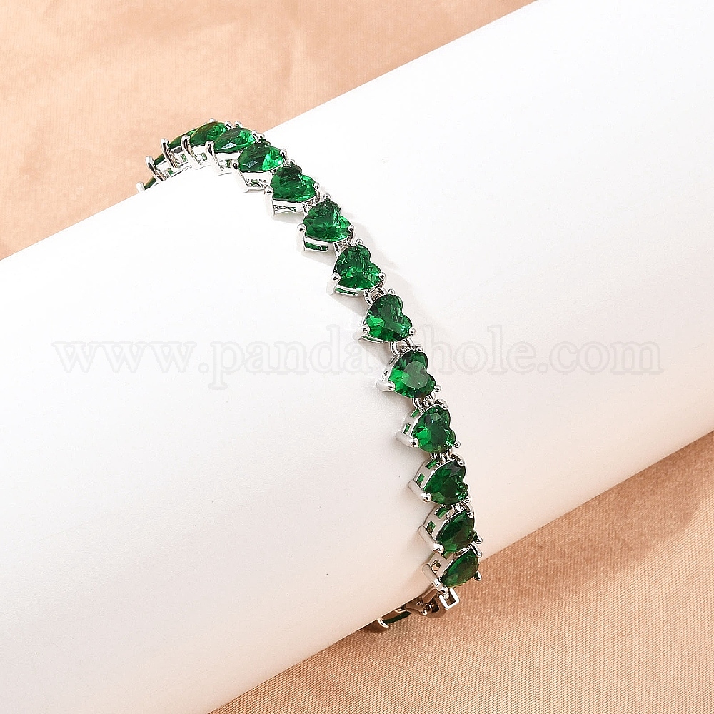 Теннисные браслеты из платиновой латуни с микропаве из кубических цирконий, браслеты для женщин, сердце, с группы часы застежками, долговечный