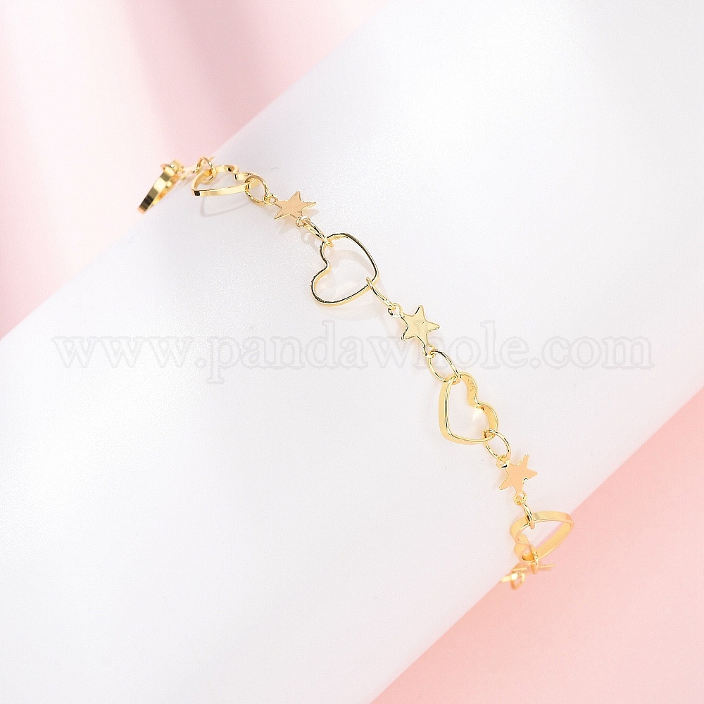 Браслеты из латунной цепочки для женщин, Сердце и звезда, долговечный, стойки покрытие, без кадмия и без свинца