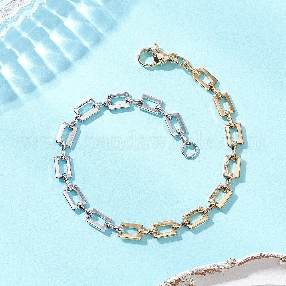 • Золотой & Цвет Нержавеющей Стали Латунь цепи браслеты, прямоугольные, с 304 нержавеющей стали, золотые и нержавеющая сталь цвет, 7.24 дюйм (18.4 см)