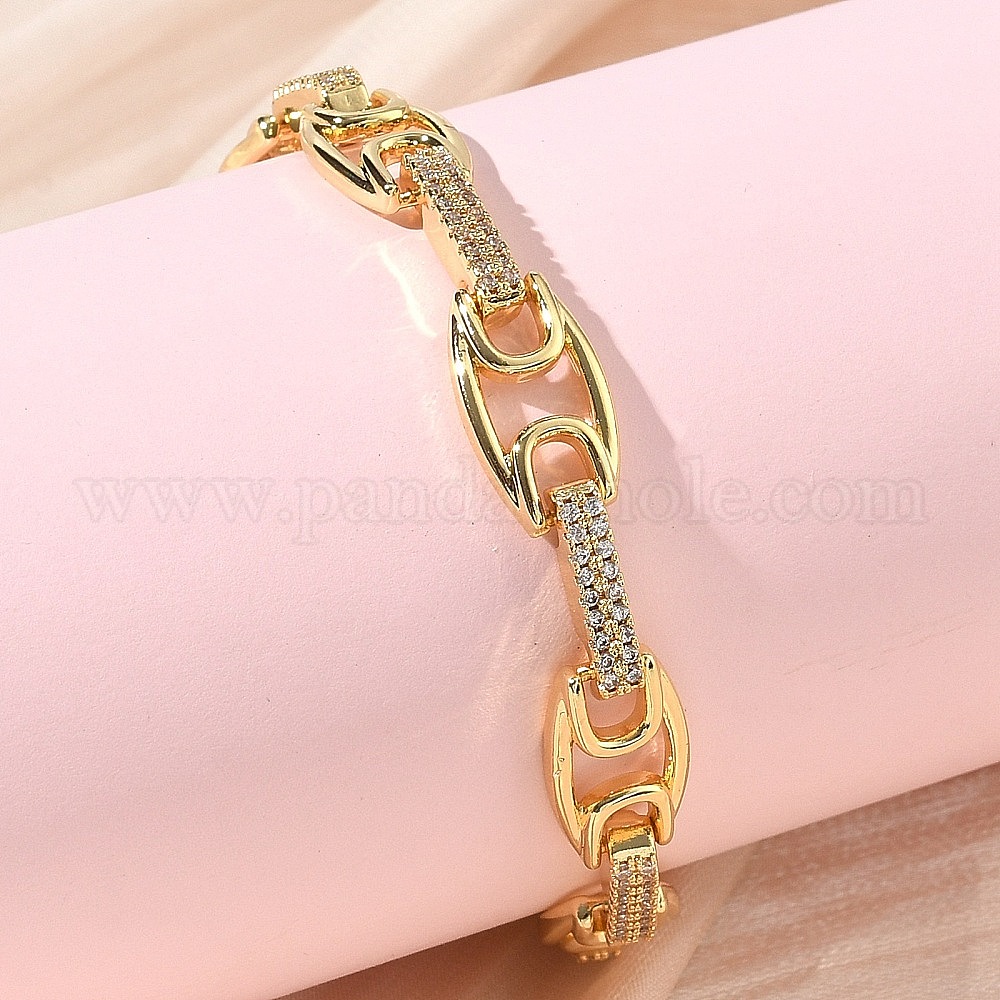 Браслет из овальных звеньев с прозрачным кубическим цирконием, украшения из латуни для женщин, без кадмия и без свинца, долговечный, стойки покрытие