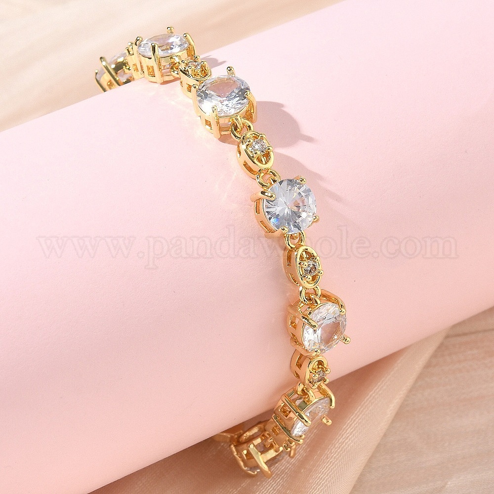 Браслет из цепочек с плоскими круглыми и овальными звеньями из прозрачного кубического циркония, украшения из латуни для женщин, без кадмия и без свинца, долговечный, стойки покрытие