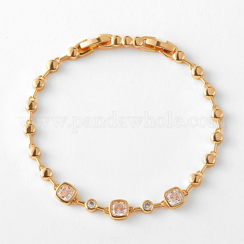 Браслеты-цепочки из латуни с прозрачными кубическими циркониями для женщин, квадратные и плоские круглые