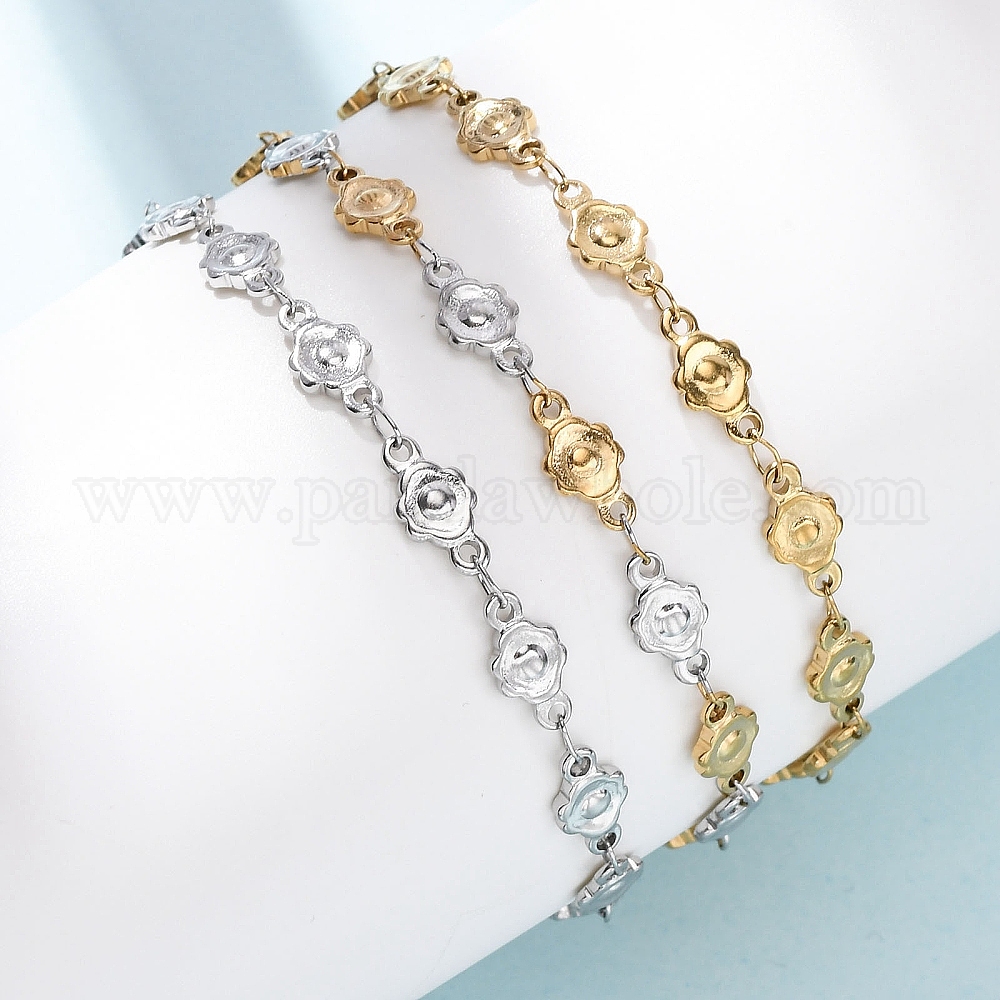304 из нержавеющей стали цепи браслеты, звеньевые цепи для женщин, цветок