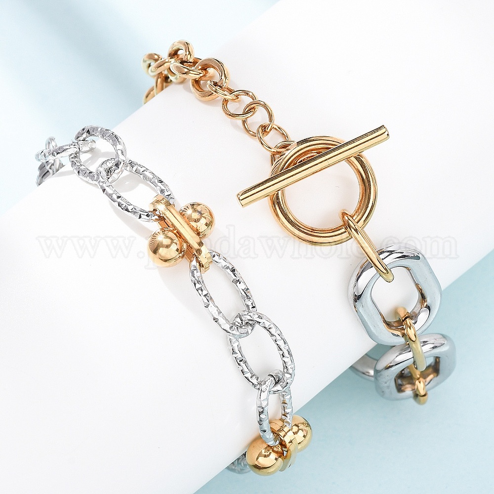 201 из нержавеющей стали цепи браслеты, кабельные цепи для женщин, два тона