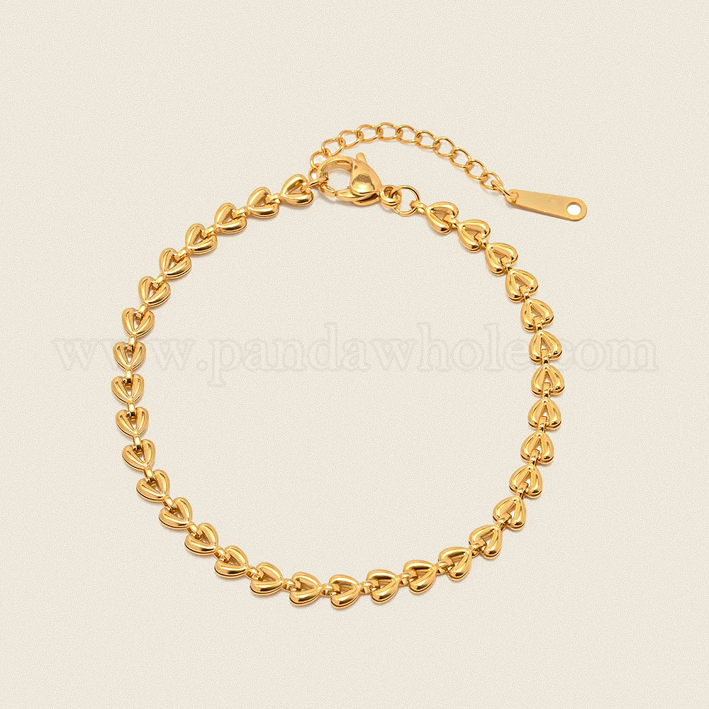 Минималистичные 304 браслеты из нержавеющей стали с сердечками, вакуумное напыление