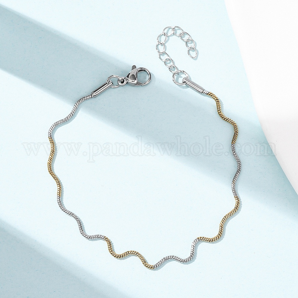 304 Браслеты-цепочки в форме волны из нержавеющей стали для женщин, ионное покрытие (ip)