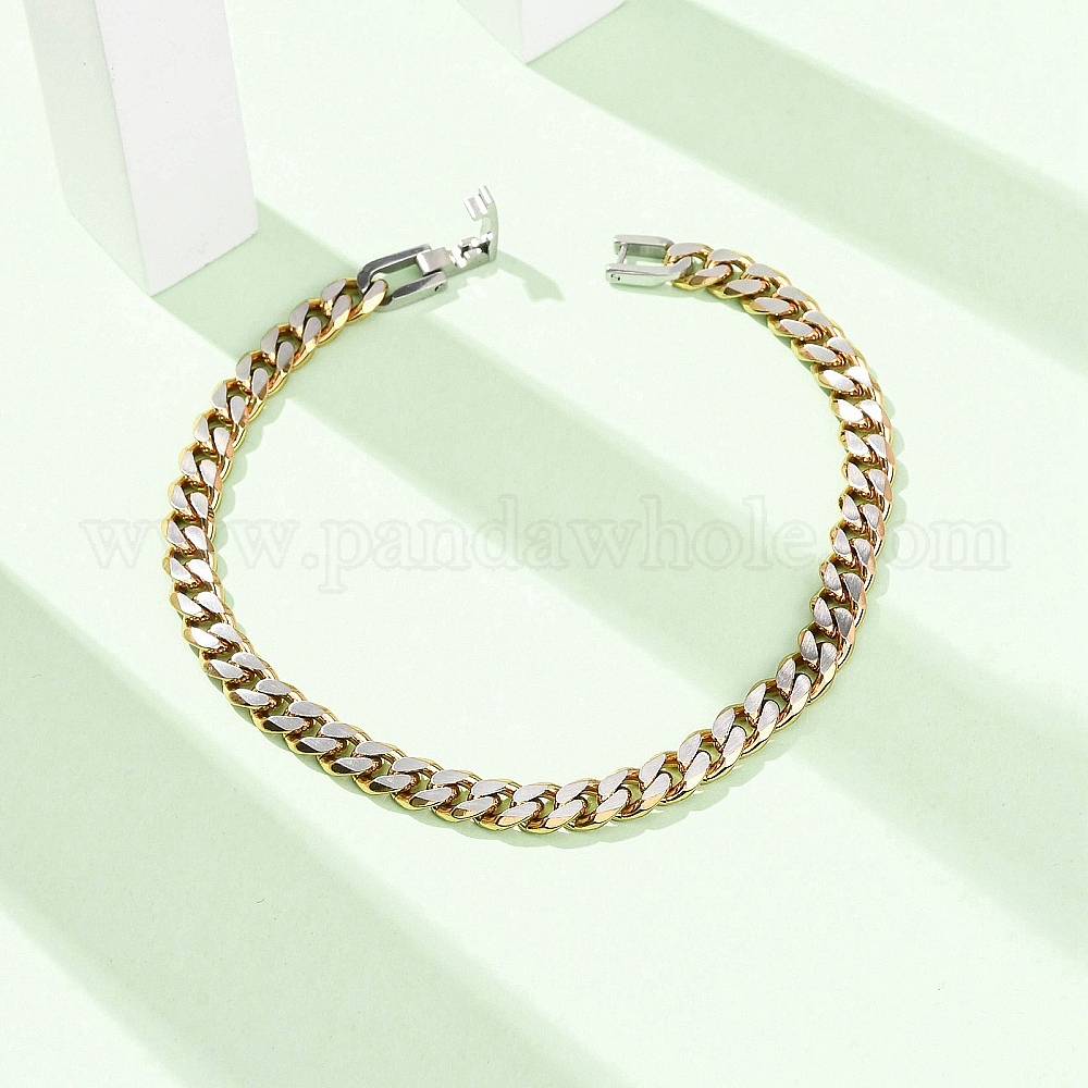 • Позолоченный и Цвет Нержавейки 304 Браслеты из нержавеющей стали с кубинским плетением для женщин, граненые, ионное покрытие (ip), настоящее золото и нержавеющая сталь, 8.66 дюйм (22 см)