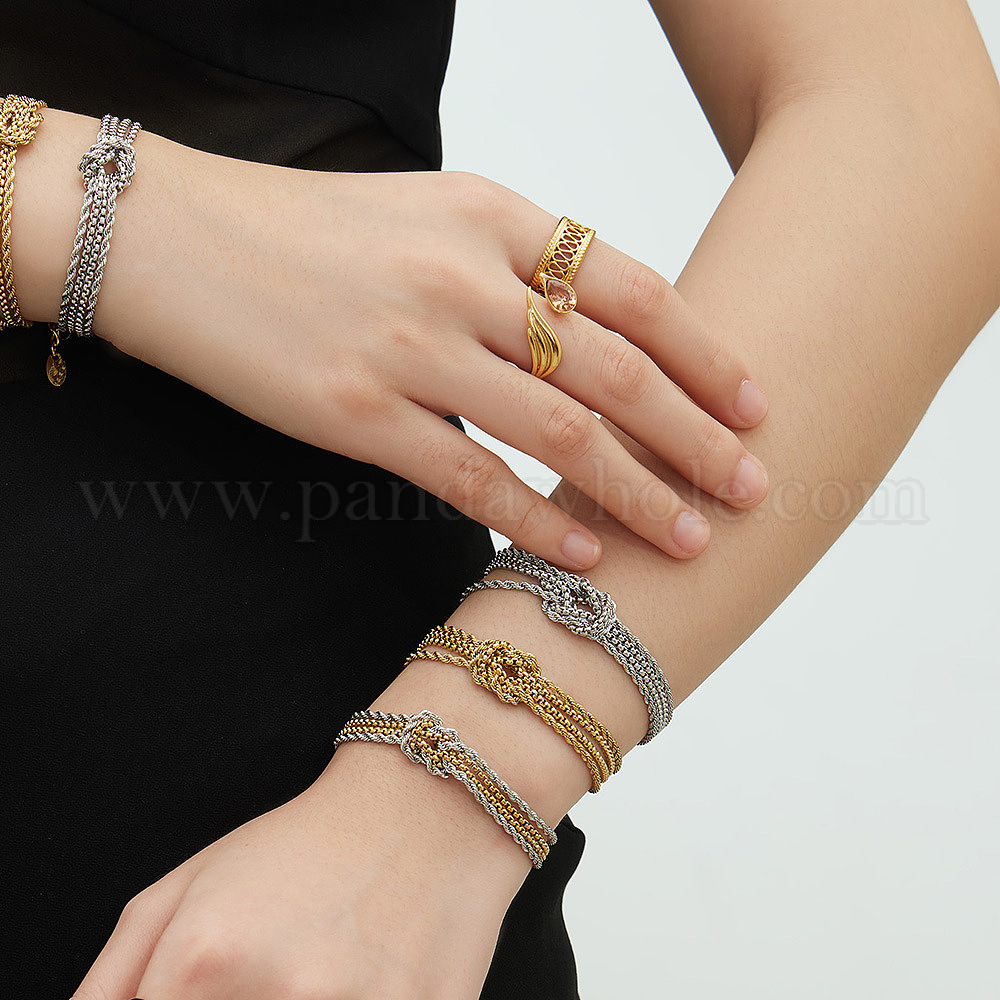 304 из нержавеющей стали цепи браслеты, многослойные браслеты для женщин, узел (03A8K9)