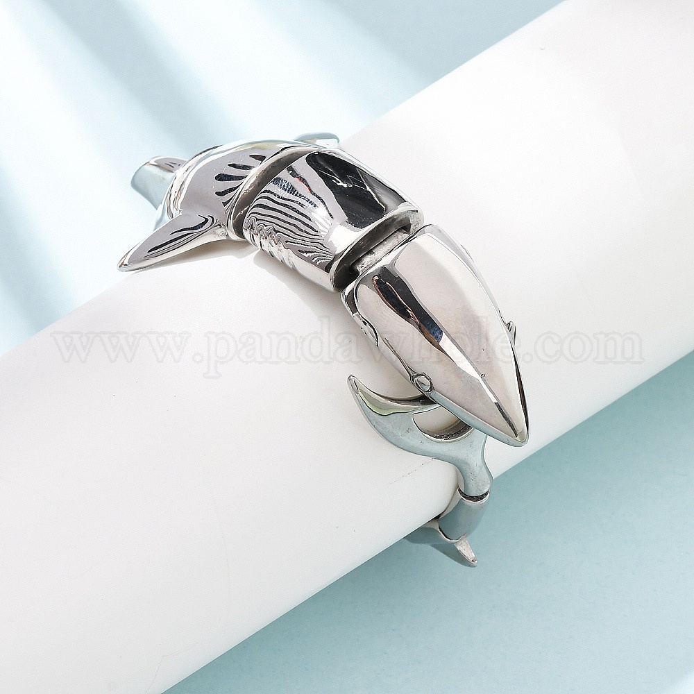 • Нержавеющая Сталь Цвет 304 браслеты-цепочки из нержавеющей стали для женщин и мужчин, акула, цвет нержавеющей стали, внутренний диаметр: 2.48 дюйм (6.3 см)