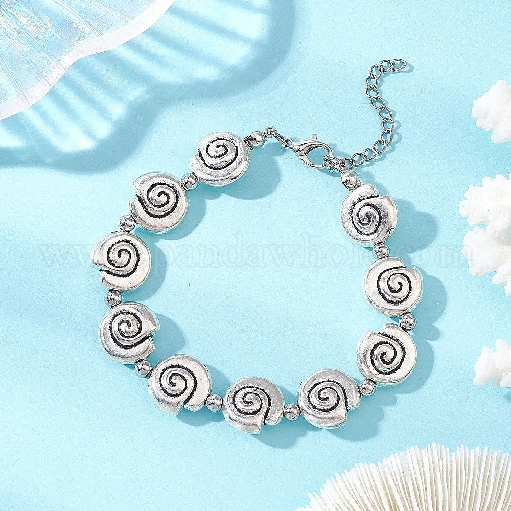 304 браслеты из звеньев цепи из нержавеющей стали для женщин, с раковиной улитки из сплава в тибетском стиле