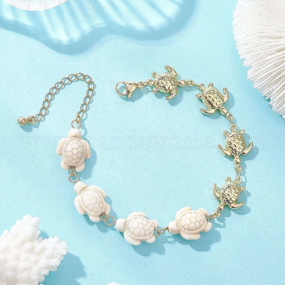 Браслеты из искусственной бирюзы и цепочек из нержавеющей стали для женщин, черепаха