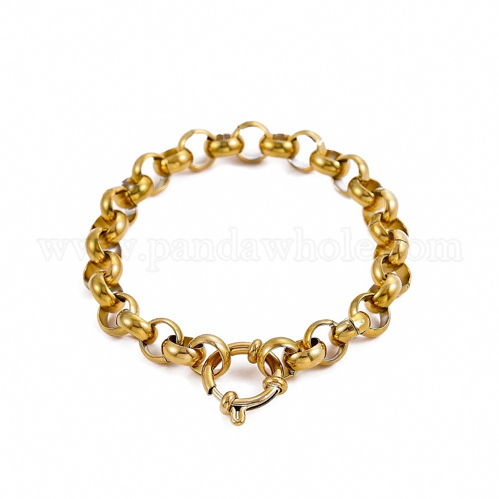 304 цепи браслеты из нержавеющей стали Роло, Браслеты с подвесками в виде колец для женщин, ионное покрытие (ip), долговечный