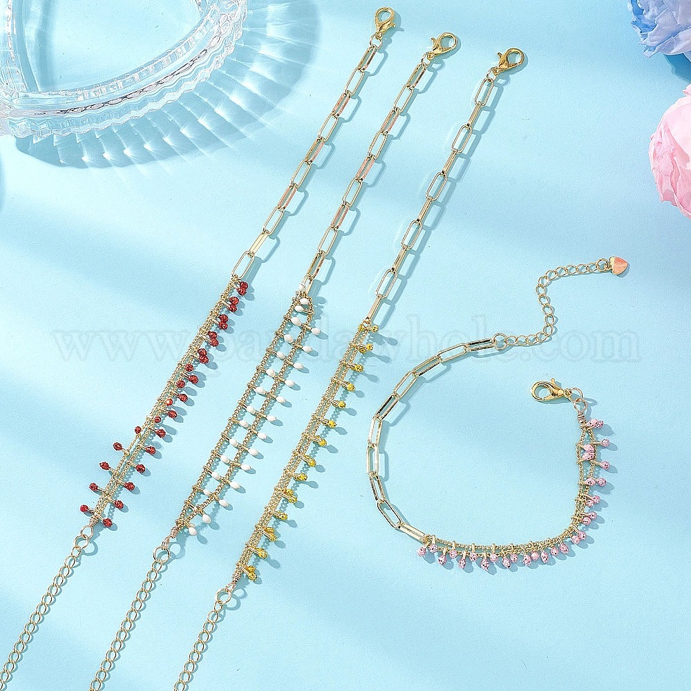 Браслеты из латунных эмалированных звеньев с бусинами и цепочки в виде скрепок для женщин, реальный 18 k позолоченный (03ASKA)
