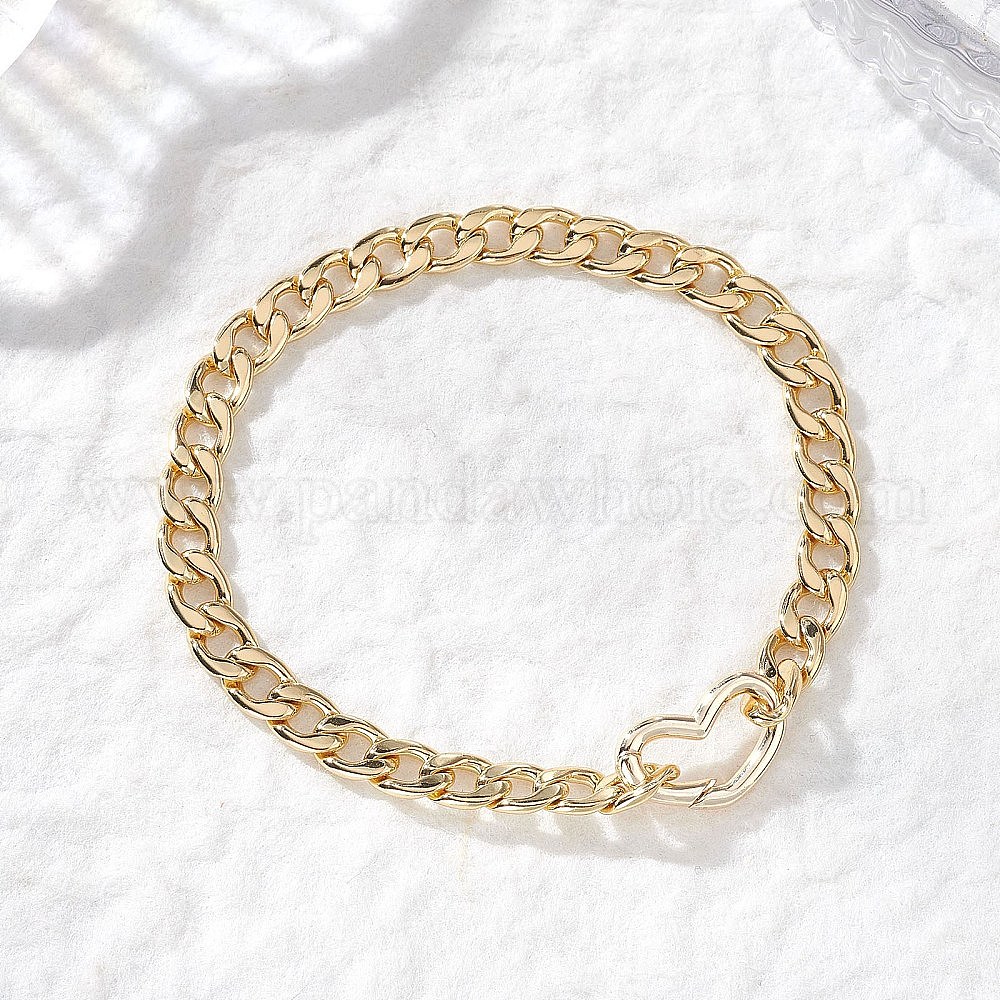 Латунные кубинские звенья цепи браслеты для женщин, с пружинными кольцами в форме сердца