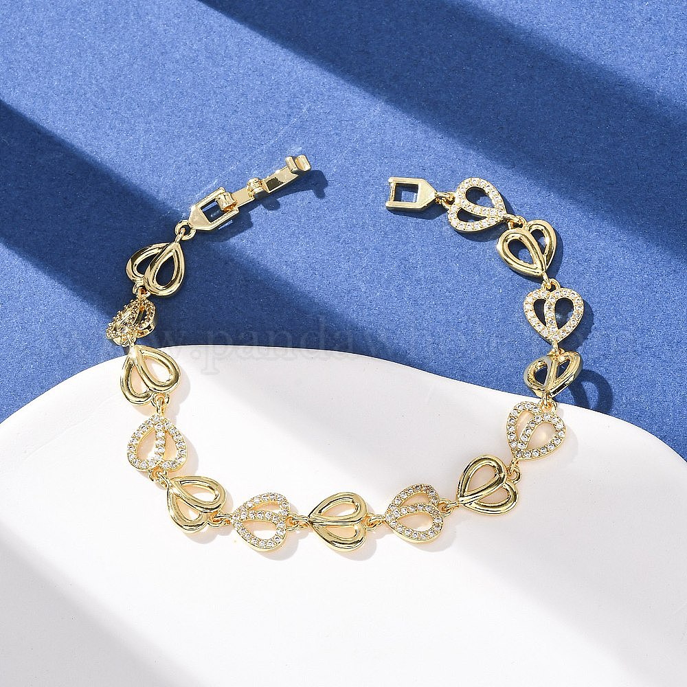 Браслеты-цепочки из латуни с микропаве из прозрачных кубических цирконий в форме сердца для женщин, долгоиграющий, гальваническое покрытие стеллажа, без свинца и без кадмия