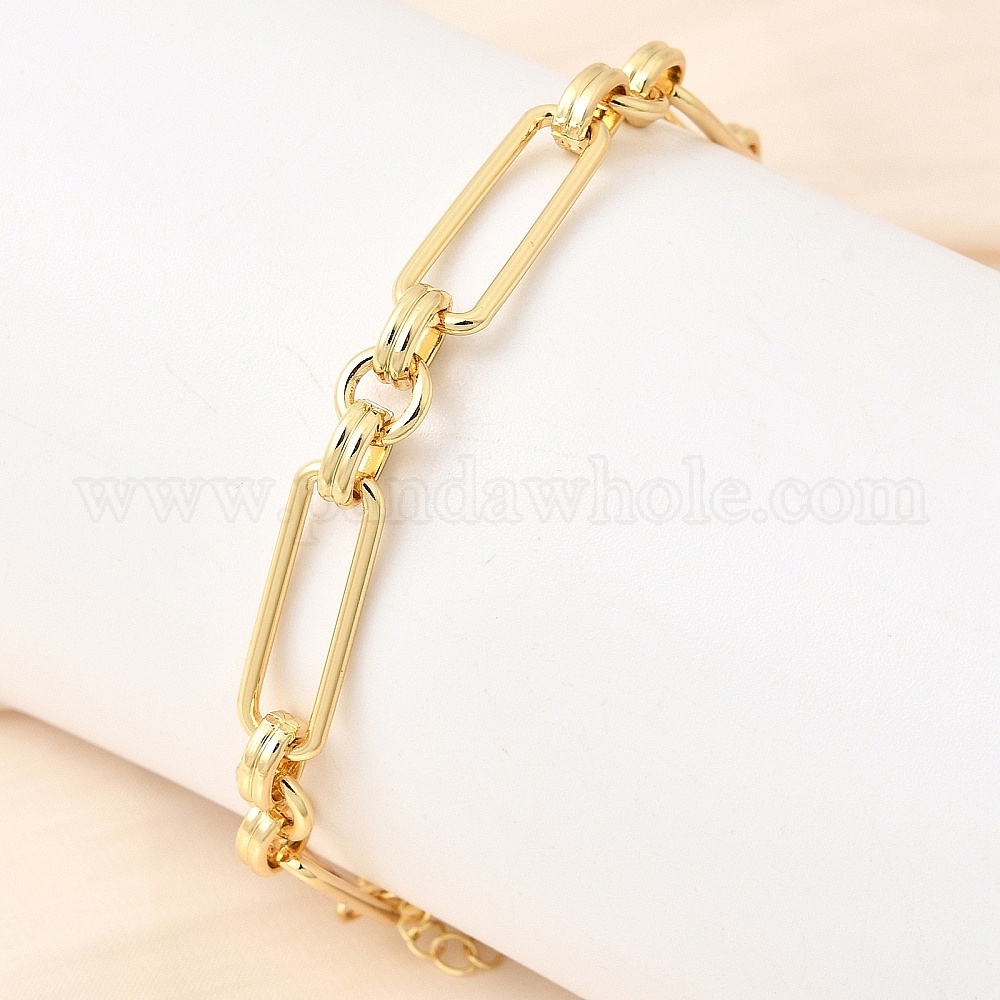 Прямоугольные латунные браслеты-цепочки для женщин, долгоиграющий, гальваническое покрытие стеллажа, без свинца и без кадмия