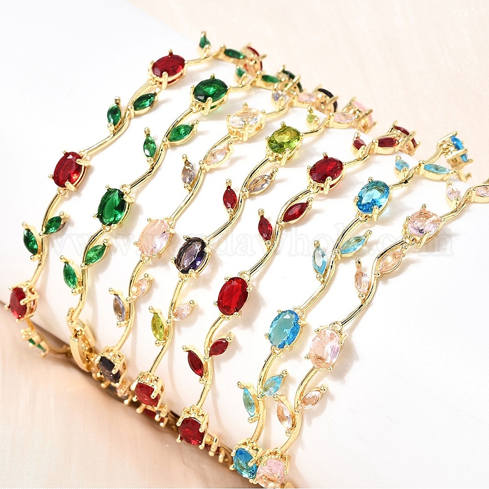 Браслеты из латуни с микропаве и кубическим цирконием в виде листьев, цепочка для женщин, без кадмия и без свинца, реальный 18 k позолоченный, стойки покрытие, долговечный