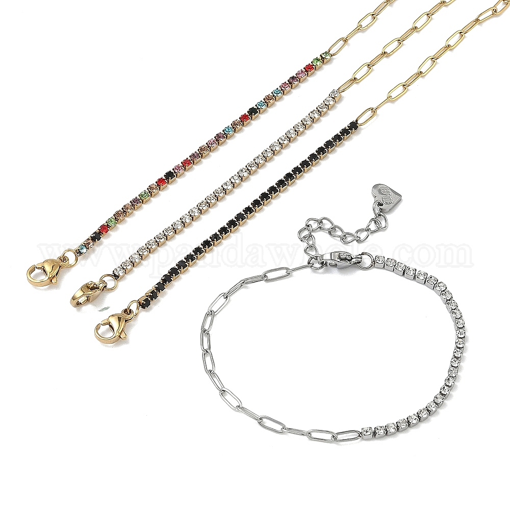 304 Браслеты из нержавеющей стали в виде цепочки из скрепки и цепочки со стразами для женщин, квадратный