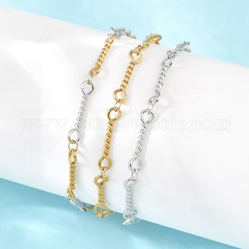 • Золотой & Цвет Нержавеющей Стали Двухцветные 304 браслеты из нержавеющей стали с витыми звеньями в виде веревки для женщин, ионное покрытие (ip), долговечный, золотые и нержавеющая сталь цвет, 6.57 дюйм (16.7 см)