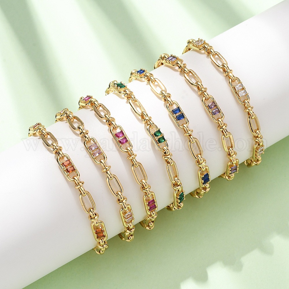 Браслеты-цепочки из овальной латуни с микропаве из кубического циркония, украшенные скрепками, для женщин., реальный 18 k позолоченный, без кадмия и без свинца, стойки покрытие, долговечный (03BAH1)
