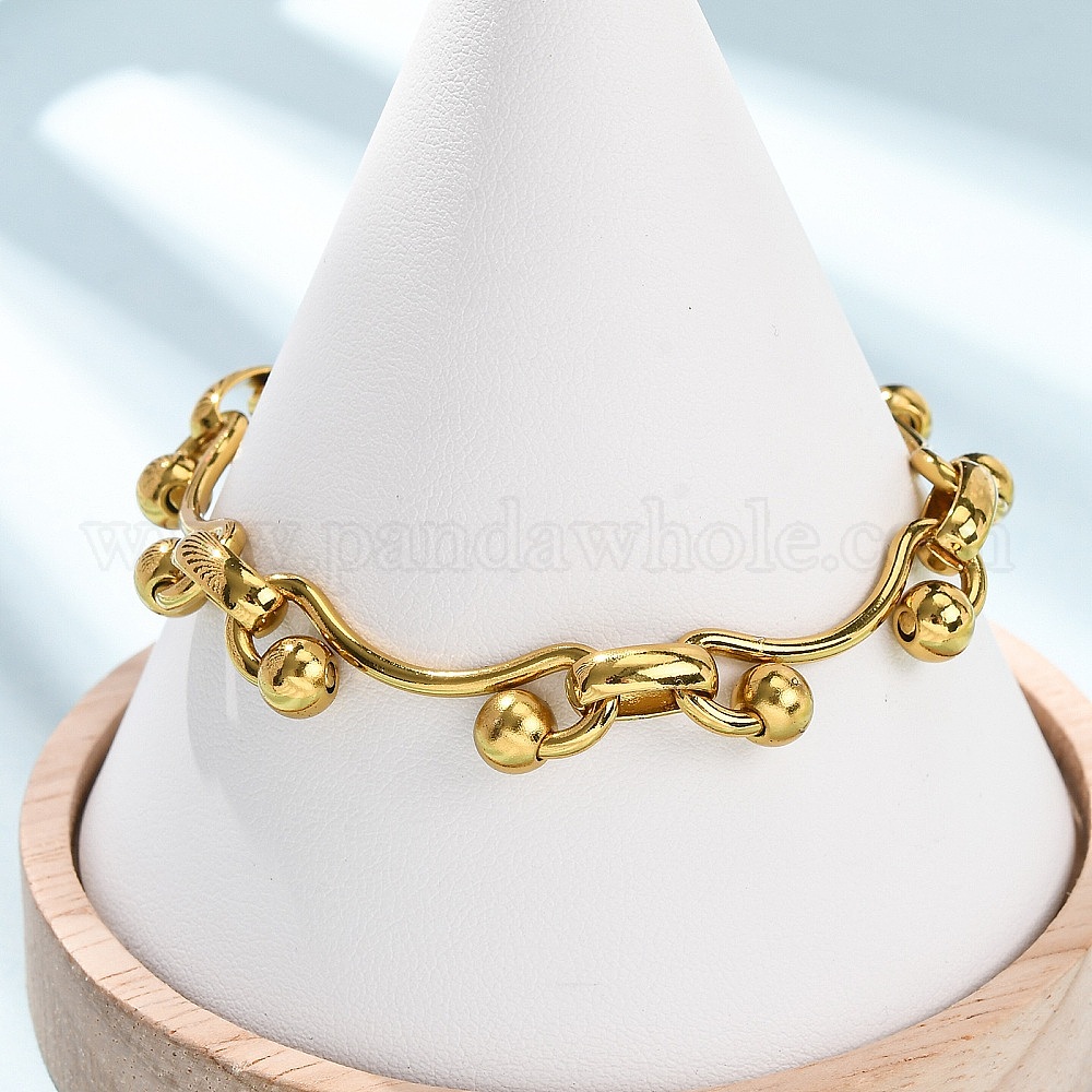 • Золотой 304 Браслеты из нержавеющей стали с изогнутыми звеньями для женщин, золотые, 7.24 дюйм (18.4 см)