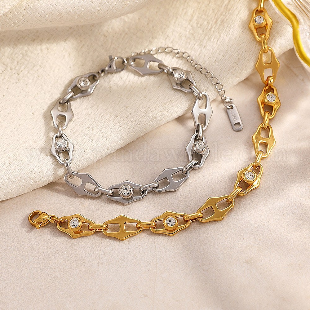 304 браслеты-цепочки из нержавеющей стали с микро-паве из кубического циркония для женщин, ромб