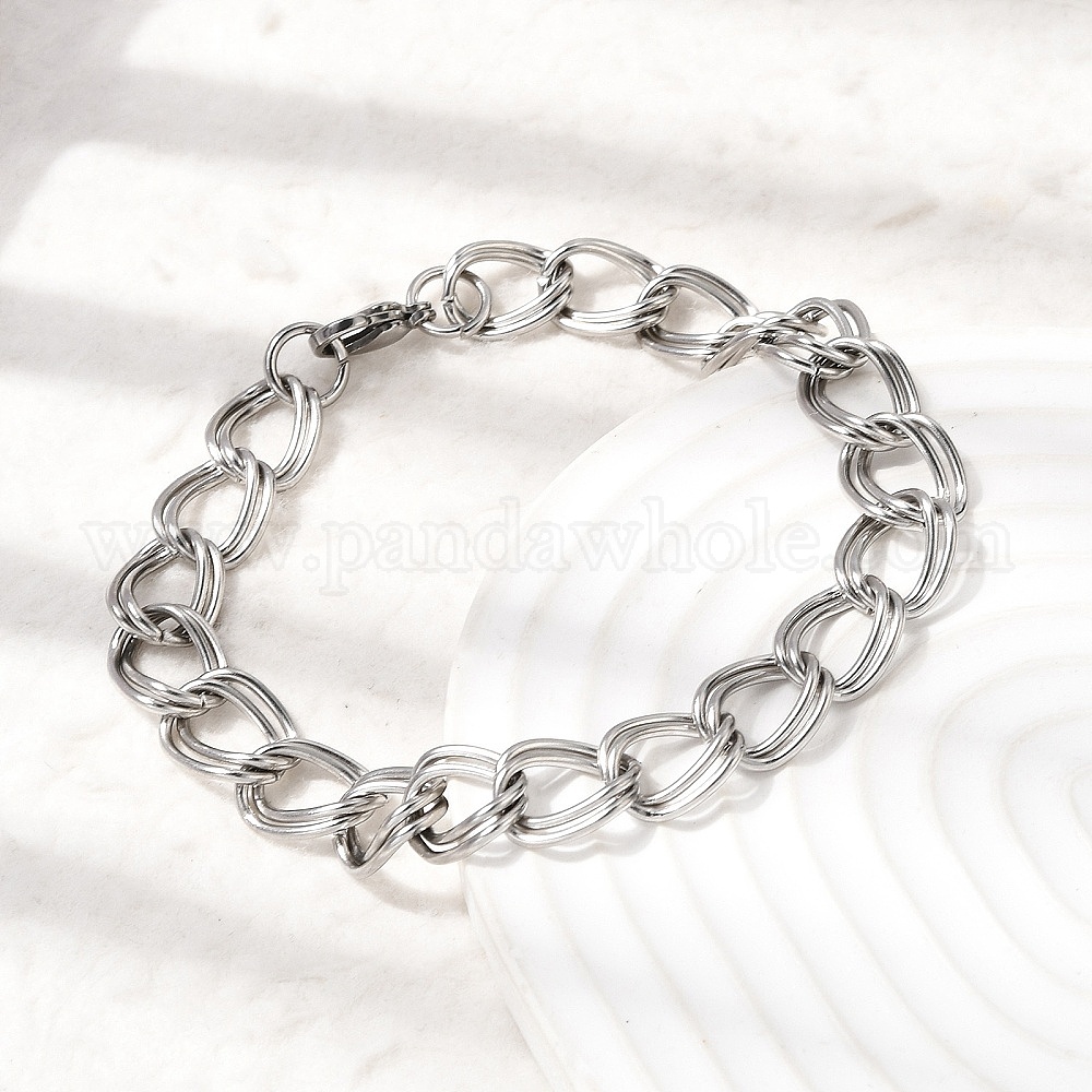 • Нержавеющая Сталь Цвет 201 нержавеющей стали Снаряженная цепи браслеты для мужчин, цвет нержавеющей стали, 8.43 дюйм (21.4 см)