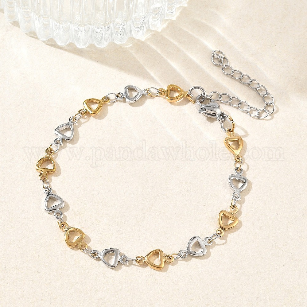 • Золотой & Цвет Нержавеющей Стали Женские 304 браслеты из нержавеющей стали с треугольными звеньями, ионное покрытие (ip), золотые и нержавеющая сталь цвет, 6.30 дюйм (16 см)