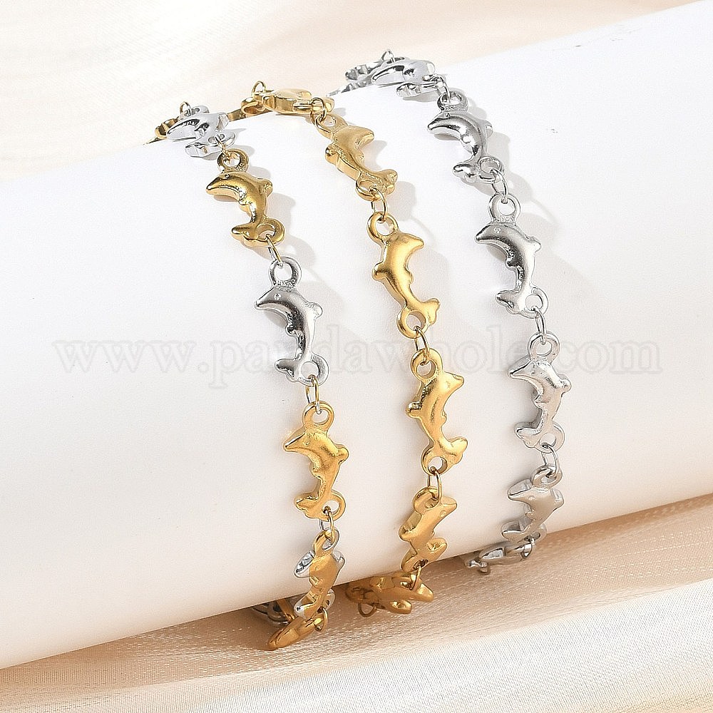 Женские 304 браслеты из нержавеющей стали с цепочками в виде дельфинов