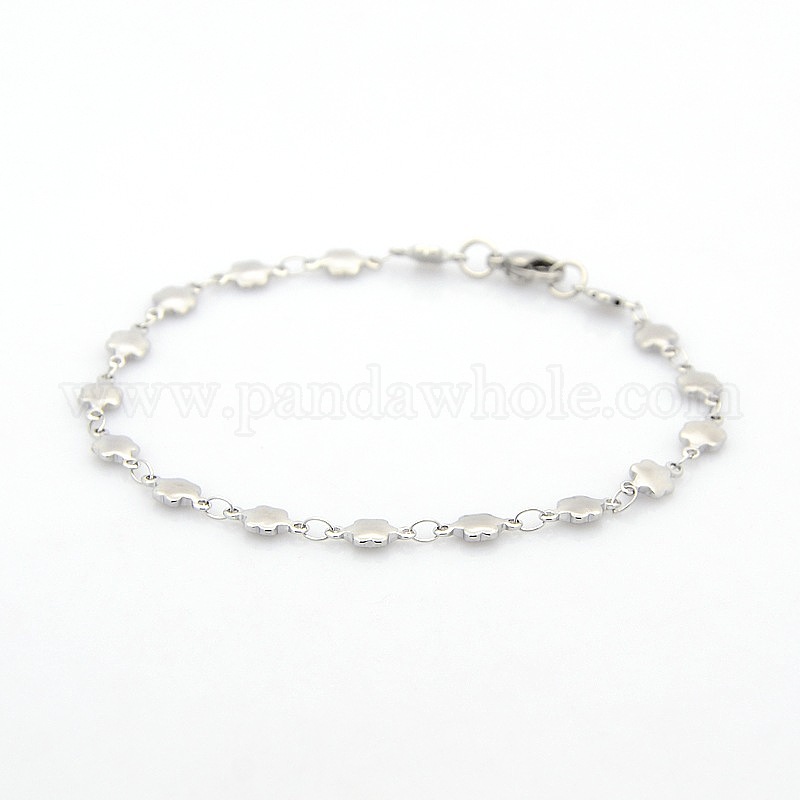 Повседневный стиль 304 цветка нержавеющей стали звено цепи браслеты, с карабин-лобстерами , 7-1/2 дюйм (190 мм), 5x2 мм
