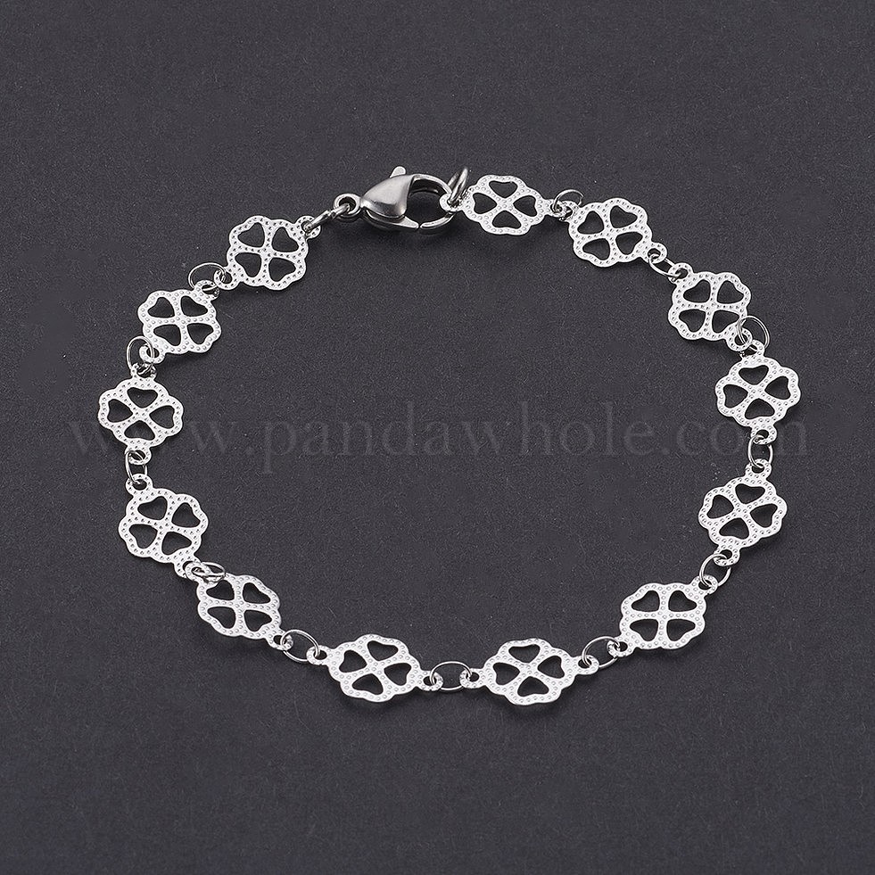 Ионное покрытие (ip) 304 браслеты-цепочки из нержавеющей стали, с карабин-лобстерами , клевер